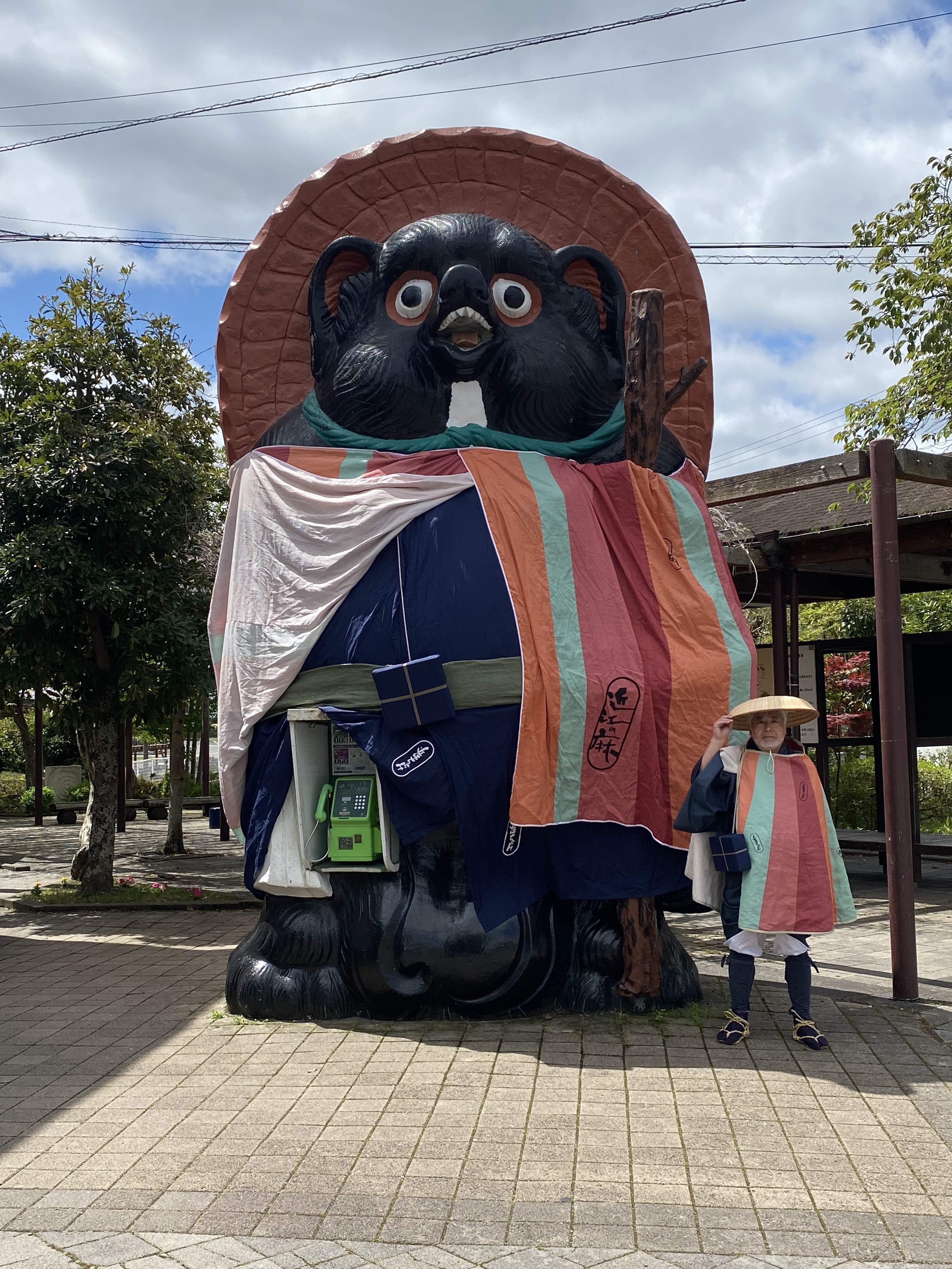 信楽駅前の大タヌキを「近江の麻」「近江ちぢみ」を使った近江商人の姿に衣替えしました。