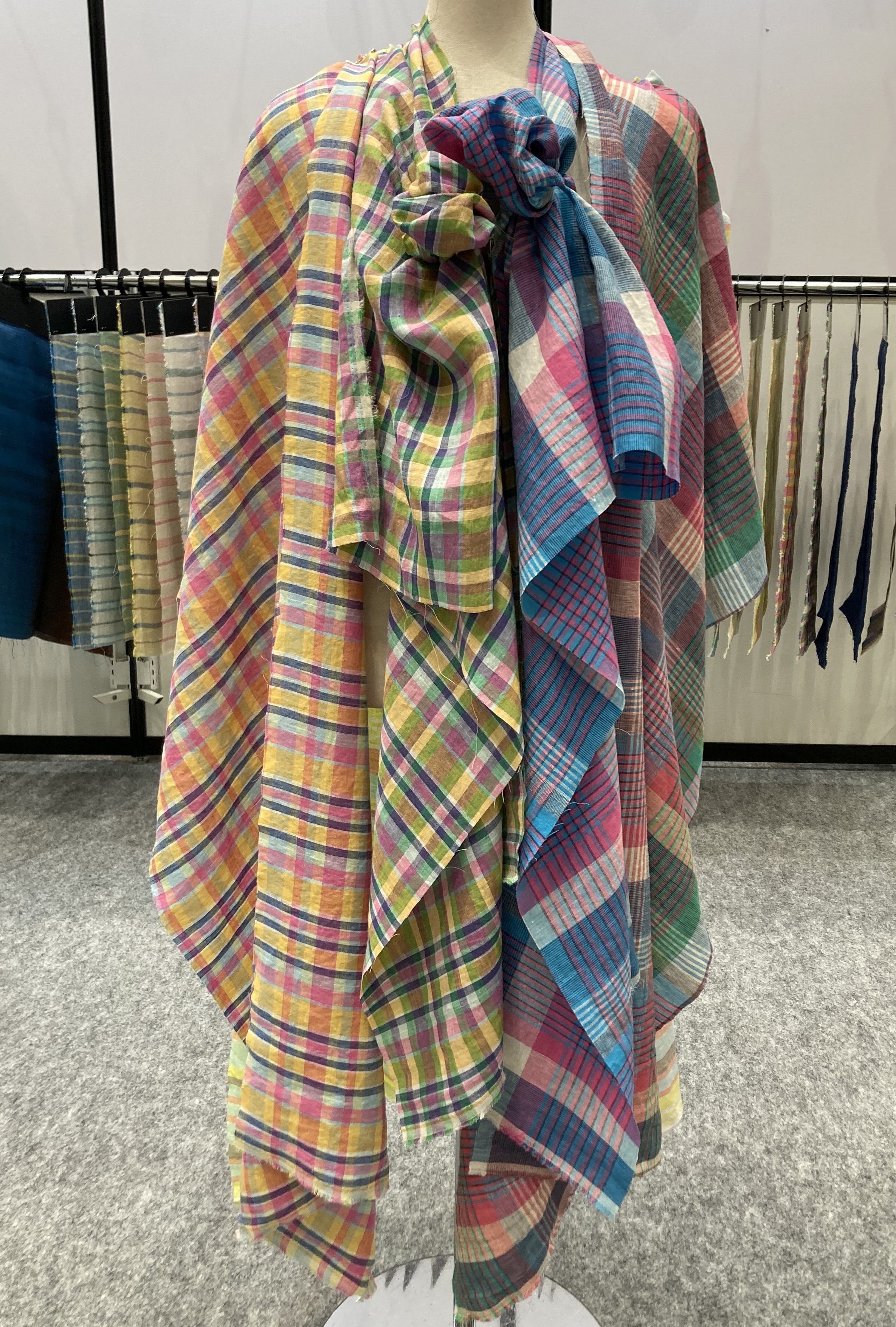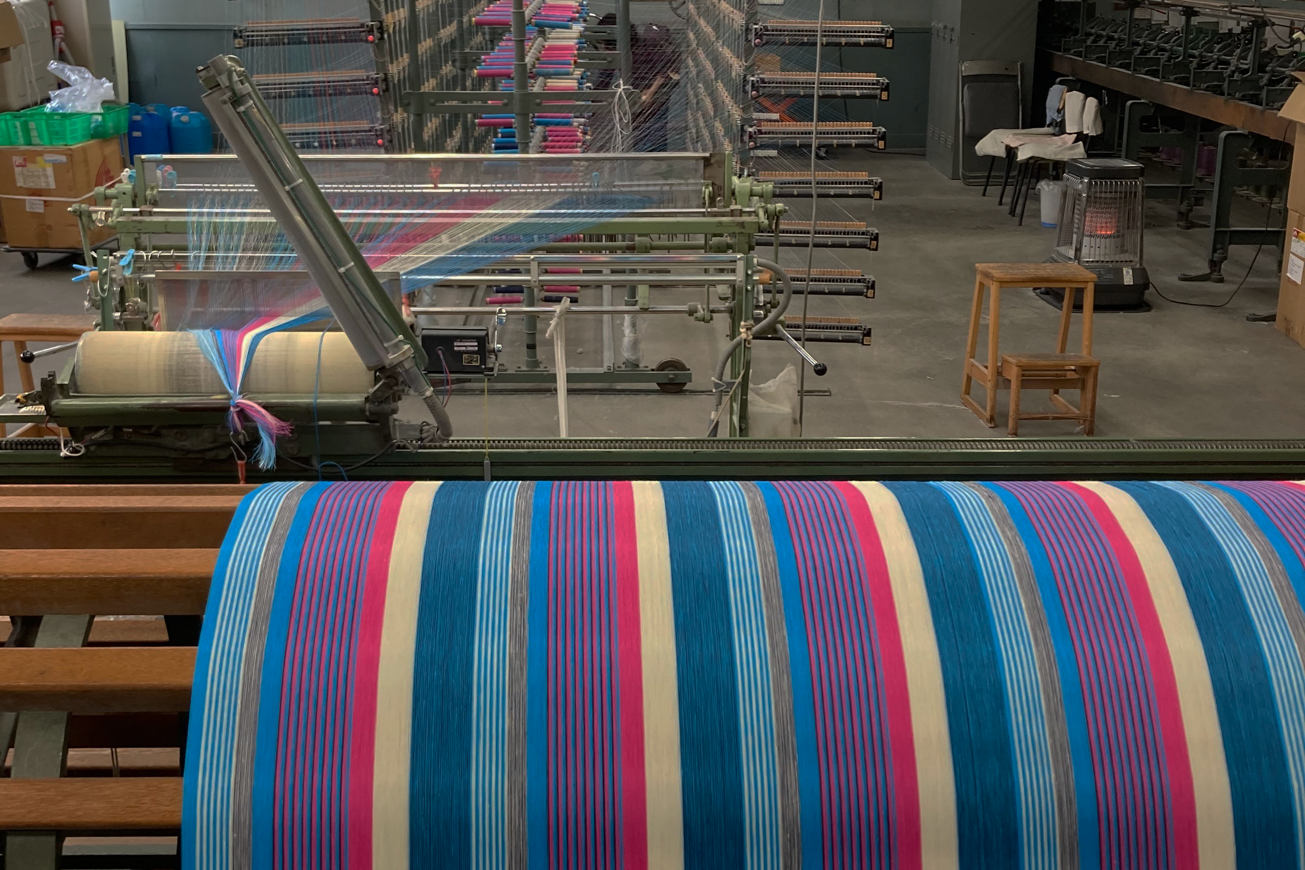 多くの産地で外部に委託されることも多い経糸整経を、滋賀麻工業株式会社をはじめとする組合内で完結できる体制を持っています。これにより、糸の種類、配列、色柄など、お客様の求める多様な織りパターンやテキスタイルデザインに、柔軟かつ迅速に対応できる提案力を実現しています。